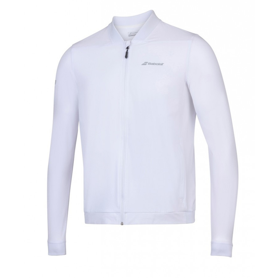 Juniorská bunda na zips BABOLAT ultraľahká z rady play club s technológiou a Fiber Dry zabezpečuje rýchle schnutie a dokonalý odvod potu.